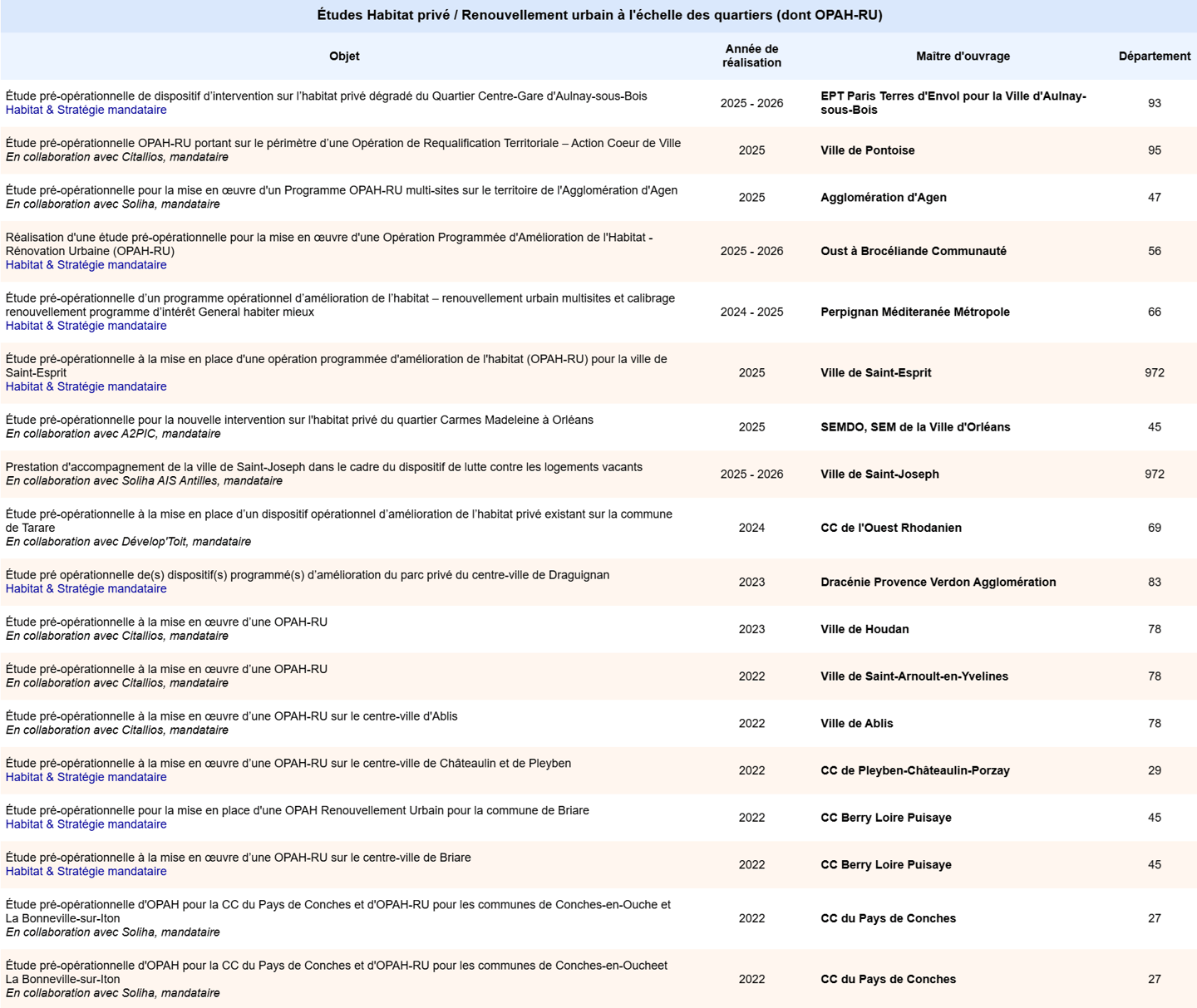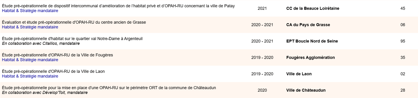 Études Habitat privé / Renouvellement urbain à l'échelle des quartiers (dont OPAH-RU)